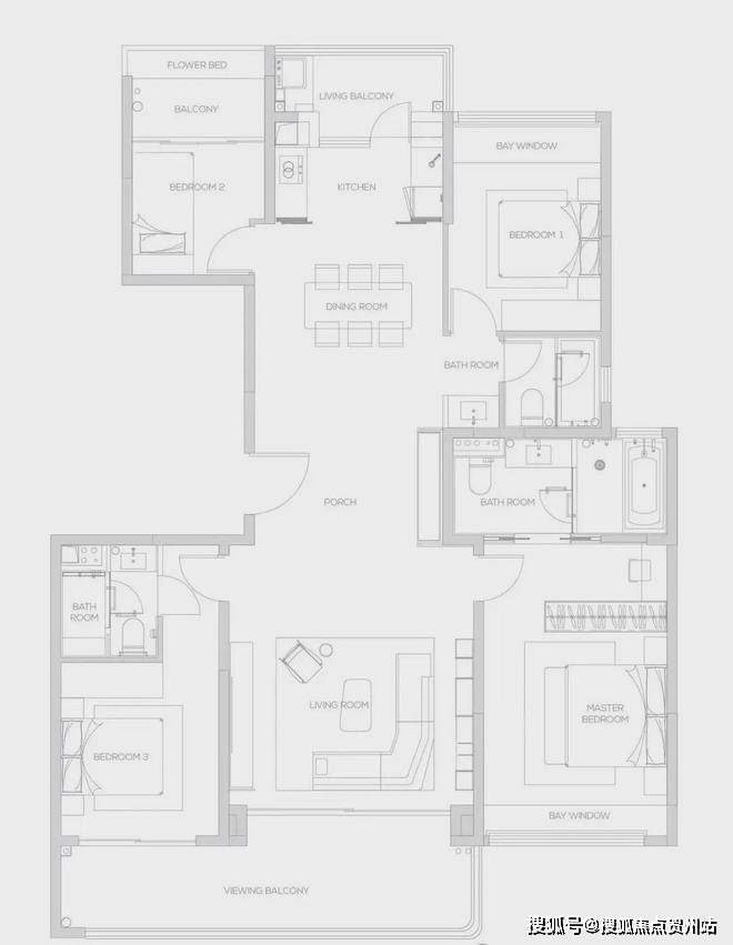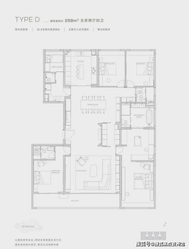 168㎡四叶草户型 四室两厅三卫