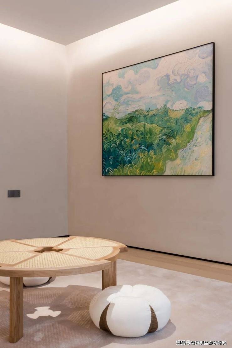 原木材质的家具总能给人以温馨舒适的感觉,尤其在休闲玩乐区的设计上,更是能够营造出一种宁静而轻松的氛围。在这个极简风格的休闲区中,软乎乎的单椅,搭配三三两两蒲团,使得休闲区更加集中而温馨,那些精心挑选的装饰品,也点缀着整个空间,让人倍感放松。