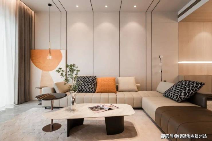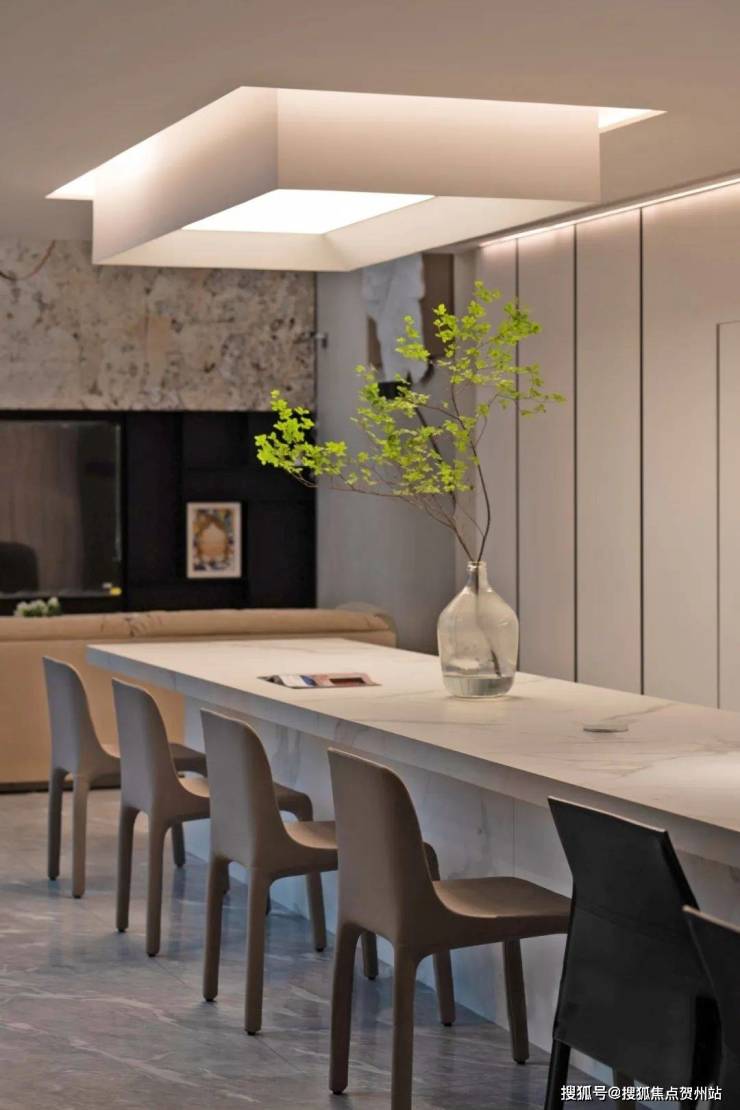 会客厅宽敞的极简皮带灯的点缀下,形成浪漫的触点。设计从细腻材质对比和空间尺度的收放入手,调动起居者对于美好生活丰富而立体的的感知。通过诗意而富有温度的艺术语言描摹空间气度。优越的居住体验与极致的美学沉淀逐一贴合,生活里的至情至味,悠长而辽远。