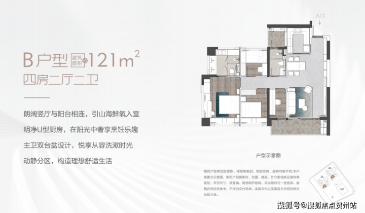 121㎡户型,打造4房2厅2卫开阔空间,竖厅与阳台相连,通风采光好,还可作为日常会客、家庭温馨互动的主场,动静分区,每个房间都很开阔,让每个人都住的舒舒服服。