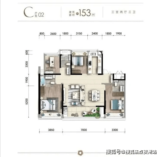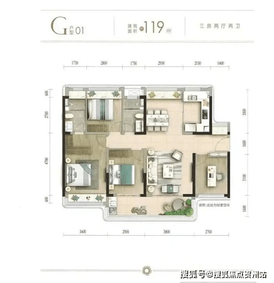 112㎡ 3+1 房两厅两卫(主力,灵活空间)