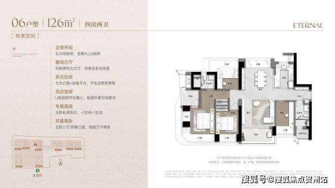 超高使用率90%+:通过“弹性方厅”(可变空间)、设备平台外拓、多飘窗实现。