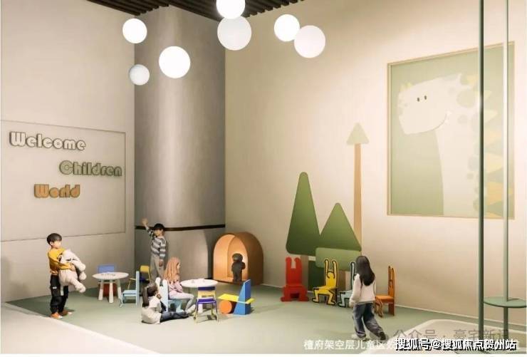 【主题架空层:各栋架空层多功能空间规划,打造儿童成长、成人健身、长者幸福的社区邻里中心】