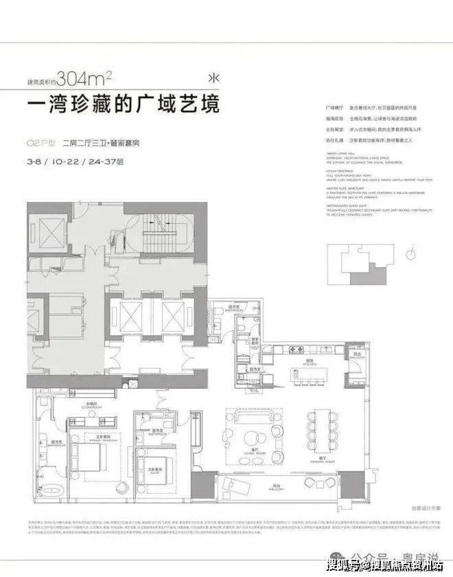 3栋低区3-37F,三面采光,客厅及主卧朝南看海,除了书房其它卧室全套房设计,该有的功能和尺度都给到了。缺点的话就是主卧整体尺度偏局促了一点。