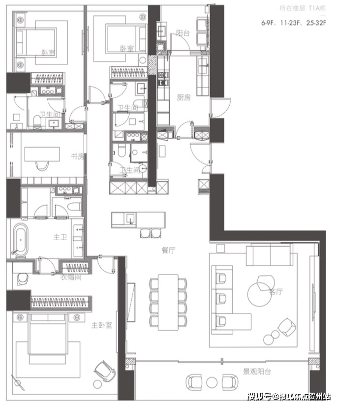 01户型 西端户 约350㎡ 四房两厅四卫