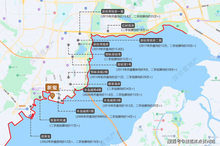 众所周知,深圳的财富主场,既在西边,更在海边。深圳叫得出名字的豪宅、最贵的房子,几乎都集中在深圳湾这条沿线上。