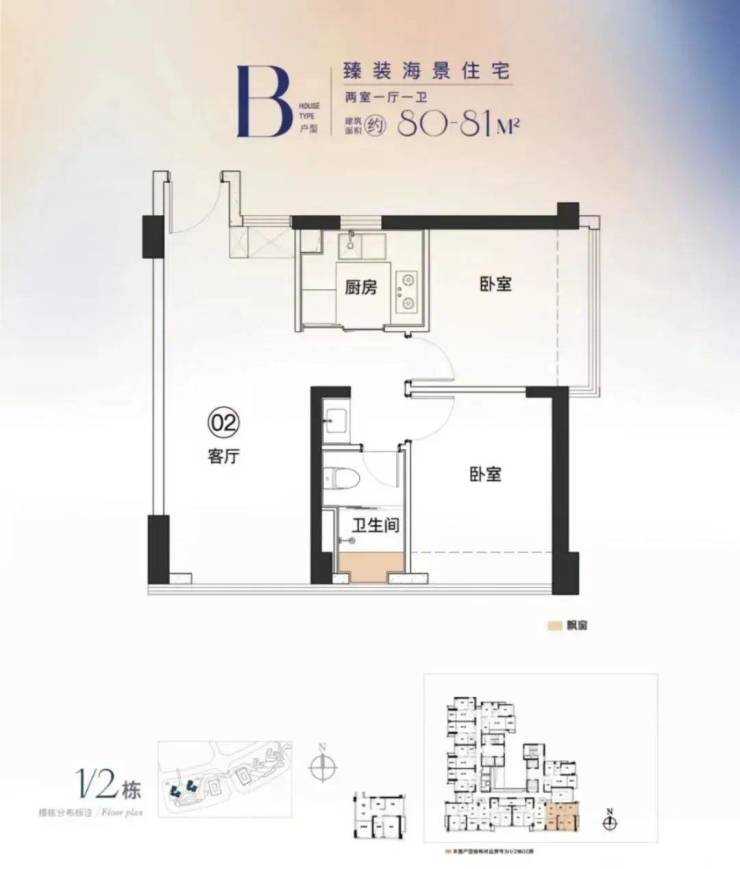 B戶型:80-81㎡,兩房一衛