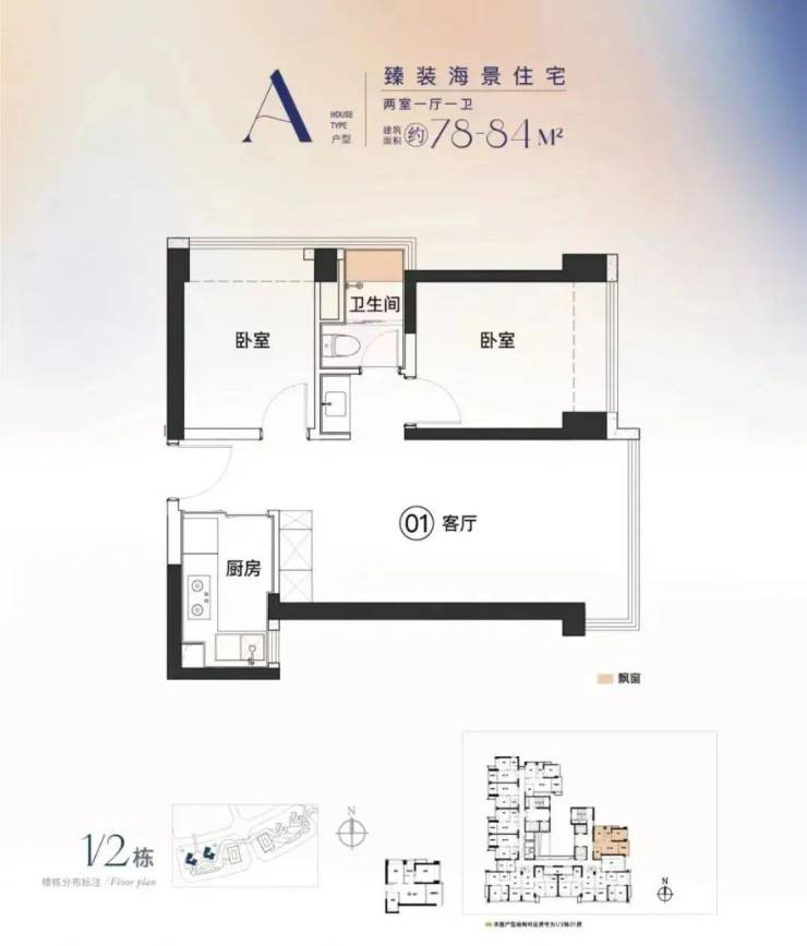 A戶型:78-84㎡,兩房一衛