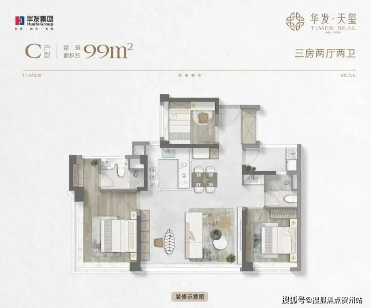 户型面积:建筑面积约99/114㎡ (新规产品,相当于传统建筑面积约120-150㎡户型)