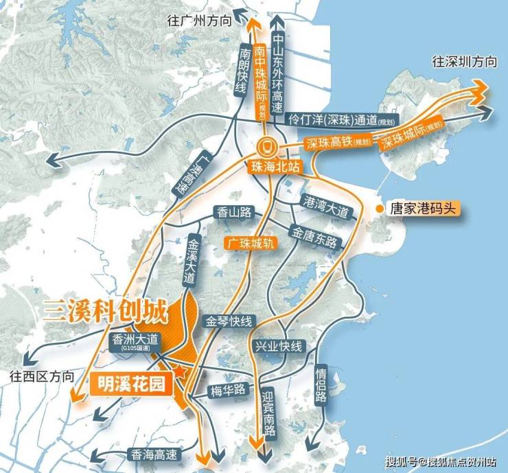 项目距离明珠城轨站8分钟车程,15分钟可达港珠澳大桥高速入口,直达港澳、广深;