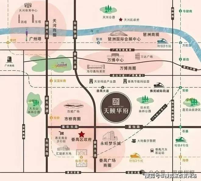 ① 地处番禺广场板块,四地铁交汇的广州枢纽级交通中心(3 号线、18 号线、22 号线、17 号线)
