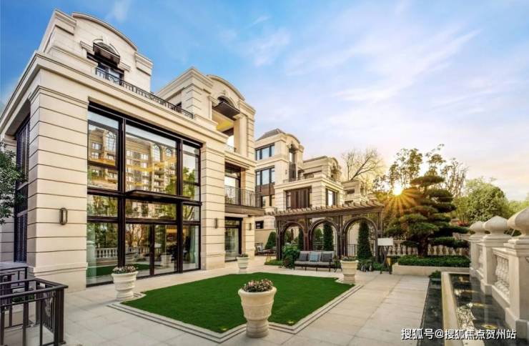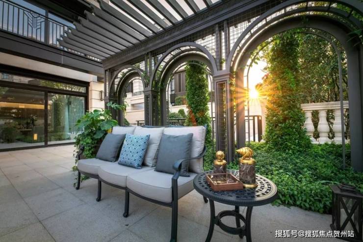 “前庭是整座建筑的门面,华发山庄样板间前庭以花镜及草坪铺就三季有花、四季有绿的高级地毯,带给客人迎面而来的尊贵感与私密感的双重敬献;而侧、后庭则属于客厅的户外延伸,进口石材铺就的地面,经久不衰,承载着庄园世家代代传袭的永恒记忆;庭院中央的草坪,在严谨中保留难得的自然气息;位列两侧的会客亭、法式凉亭,则成为世家绅士、太太尽情享受午后阳光的最佳去处。”