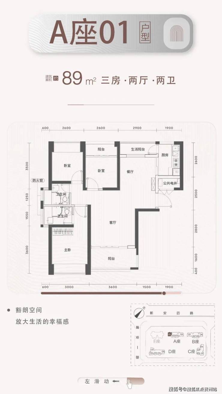 (1)89㎡三房两卫,折后总价660万起,折后单价7.4万;