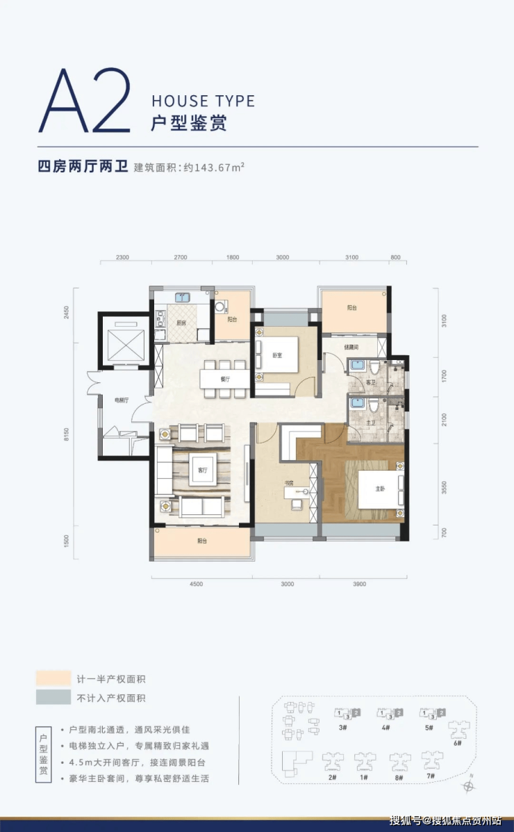 A1、A2户型为镜像户型,是项目最大面积户型。