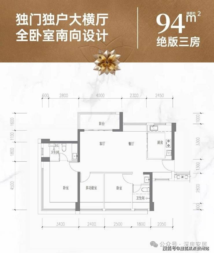 94㎡的3房2厅2卫,折后总价426-451万/套,单价4.51-4.78万/㎡。