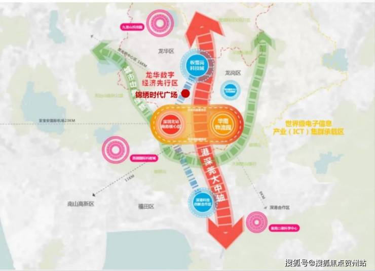 科创产业:北站商务核心区与坂田坂雪岗科技城双区交汇,集聚美团、深圳通、华为、富士康等龙头产业,形成超密集企业矩阵。