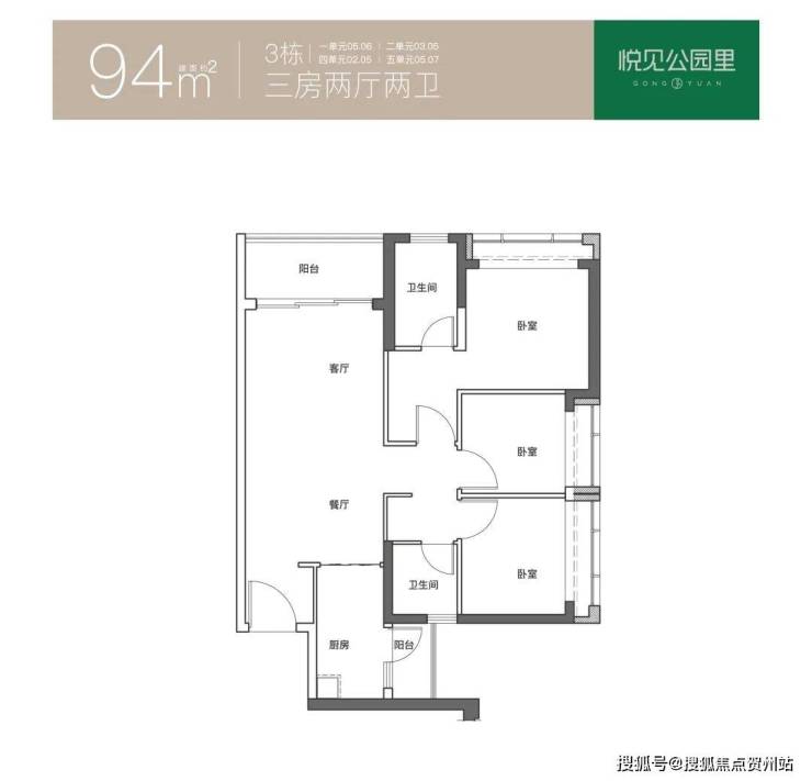 (3)91-97㎡:3房2厅2卫(含91/94/95/97㎡),三开间朝南,双卫干湿分离(已经售罄);