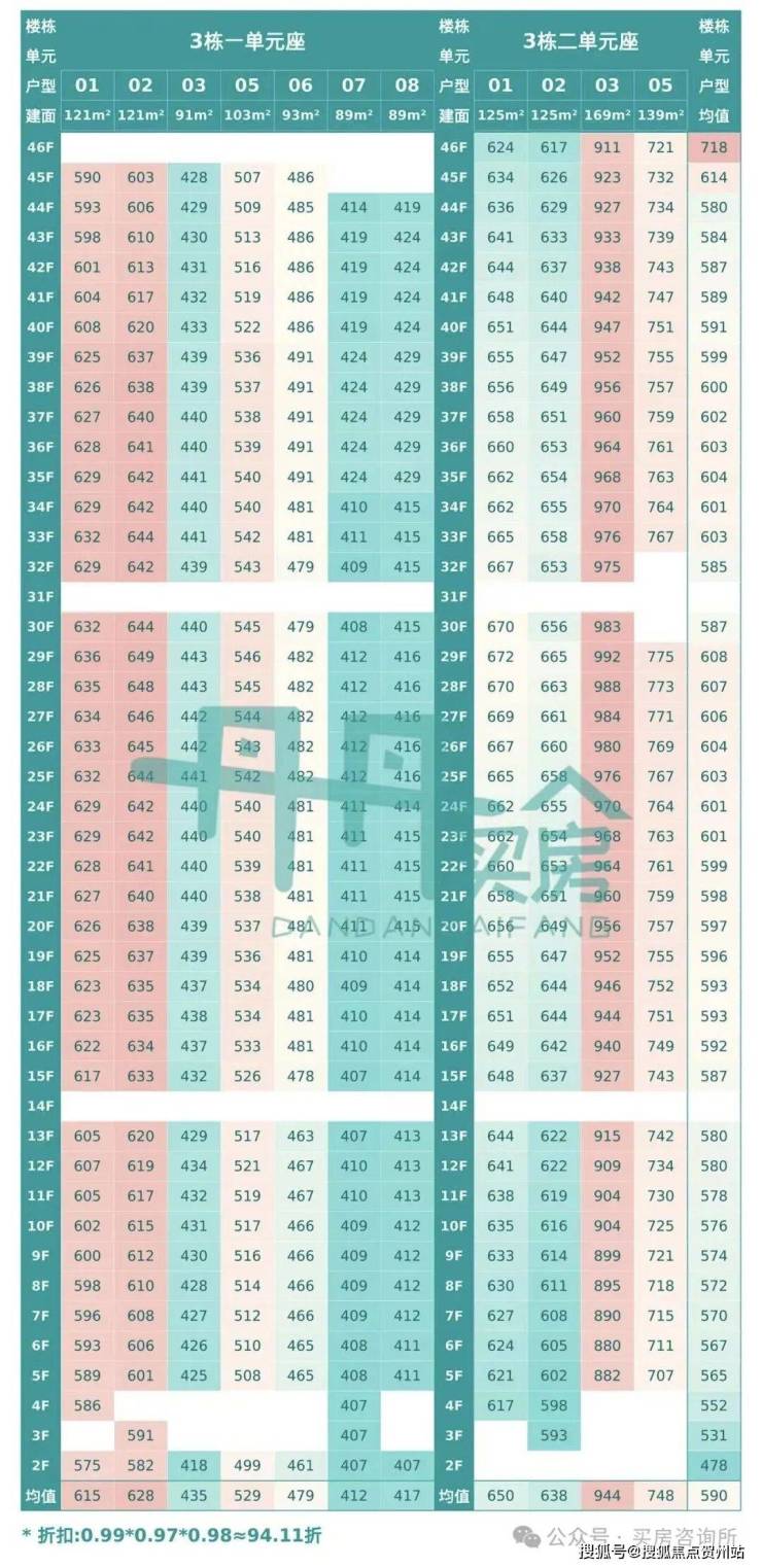 89-91㎡三房二卫,93-103-121-125平米的四房二卫,139㎡的五房二卫,169㎡的六房。据了解本次使用率高达104%。这次首推的3栋2单元是楼王单位,3梯4户设计,3栋1单元3梯7户设计