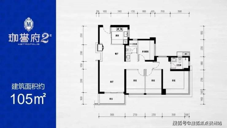 105㎡的4房2厅2卫,设计的是竖厅格局,动静分区,客厅3.6米开间,S墙设计预留冰箱卡槽位,4个卧室分别为3.3/2.75/2.35/2.35米的宽度,主卧270°环幕飘窗视野,U型厨房,阳台进深1.6米,得房率:77.31%(不含赠送),西南或东南朝向看小区花园。