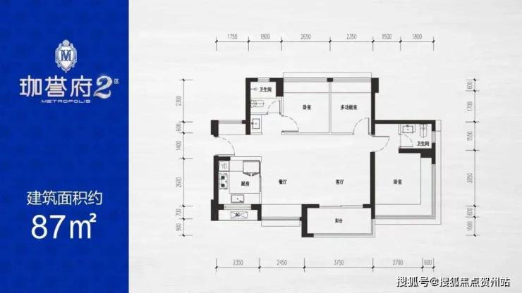 87㎡的3房2厅2卫,设计的是横厅南北通透格局,客餐厅6.2米开间,3个卧室分别为3.3/2.65/2.35米的宽度,主卧270°环幕飘窗视野,U型厨房,得房率:77.54%(不含赠送),阳台进深1.7米,主朝东南朝向。