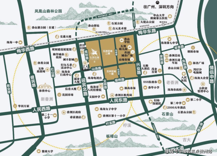 傲踞珠澳中轴之上,位于粤港澳湾区内环,香洲、拱北、吉大繁华商圈,千年文脉,香华、文园、香山学校等全龄知名学府簇拥左右,更享湾区大桥时代越来越好:更顺畅的兴业快线、更美的凤凰山森林公园、更惬意的香山驿站升级,更优越的主城人居价值尽汇聚于此。