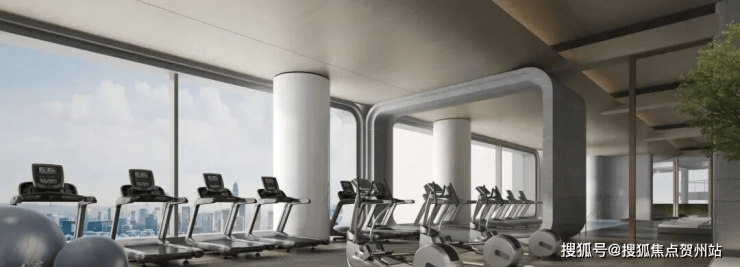 配备丰富器材的云端健身中心,与楼下绿意掩映的社区跑道,
