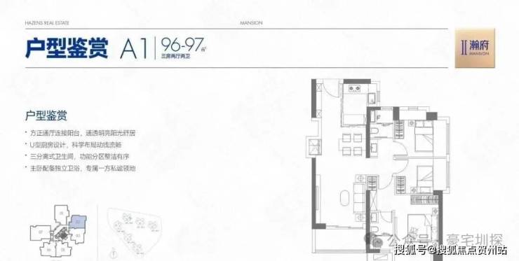 96 - 98㎡三房两厅两卫(A1/A2/A3 户型)