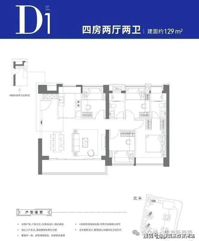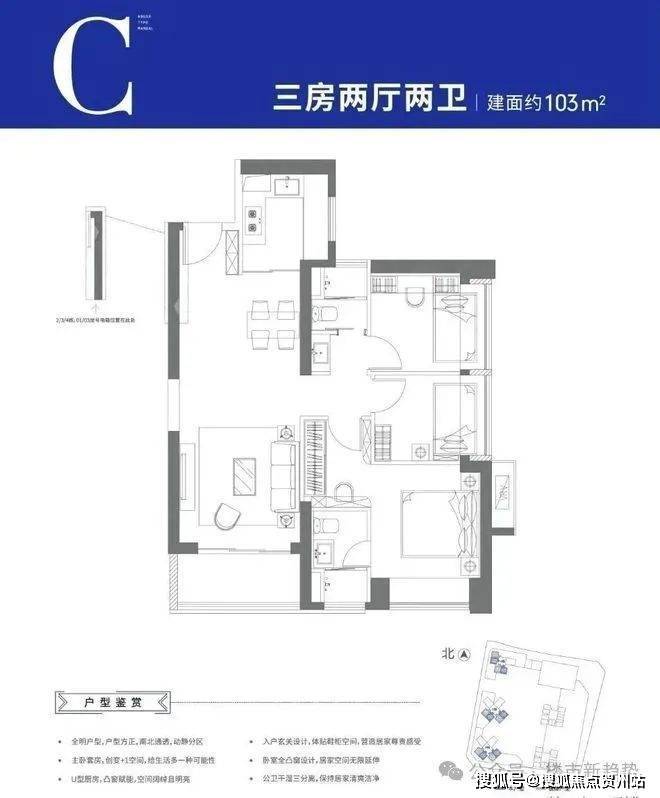 可售户型:103㎡三房两厅两卫、129㎡四房两厅两卫