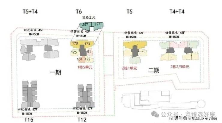 本次推售1栋五单元(45层),建面91-173㎡的3-4房。