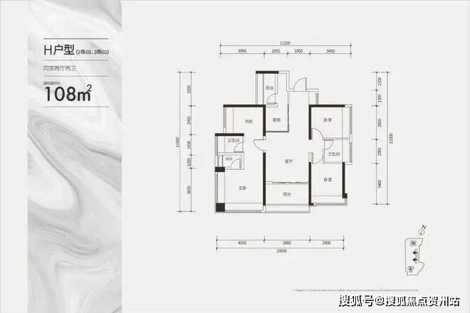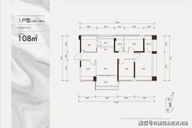 建面约108㎡双龙抱珠四房户型