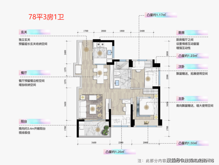 78平3房1卫,95平3房2卫,112平4房两卫三个户型