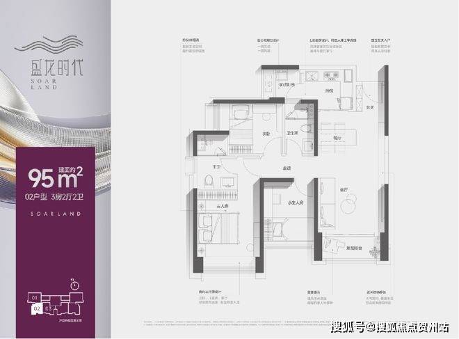 【户型面积】约99㎡3+1房2卫/95㎡3房2卫