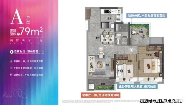 其中,建面约79㎡2房,户型方正,南北通透,空气对流;