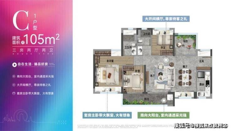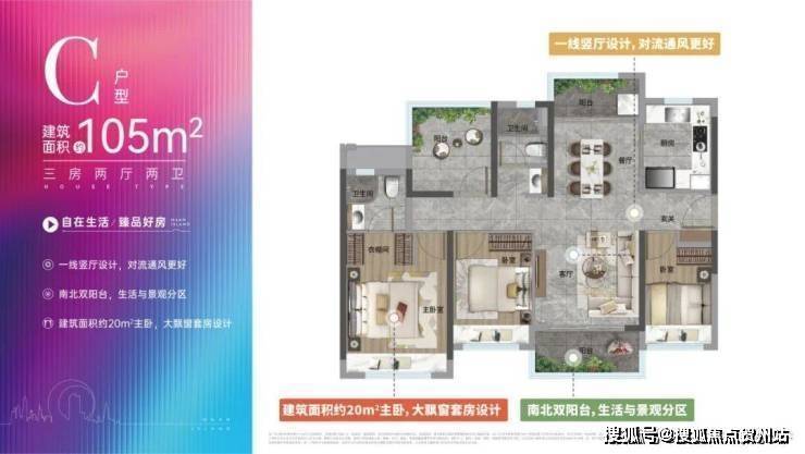 建面约105㎡3房,为全明户型设计,采光通风效果优越;