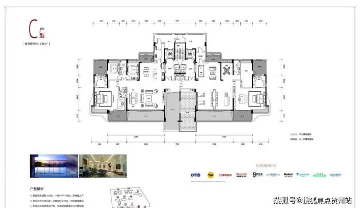 10栋有建面约278/535㎡两种户型,11楼以下是一层两户的278㎡,11-17楼,就是一层一户,相当于两套打通卖,所以是建面535㎡的户型。