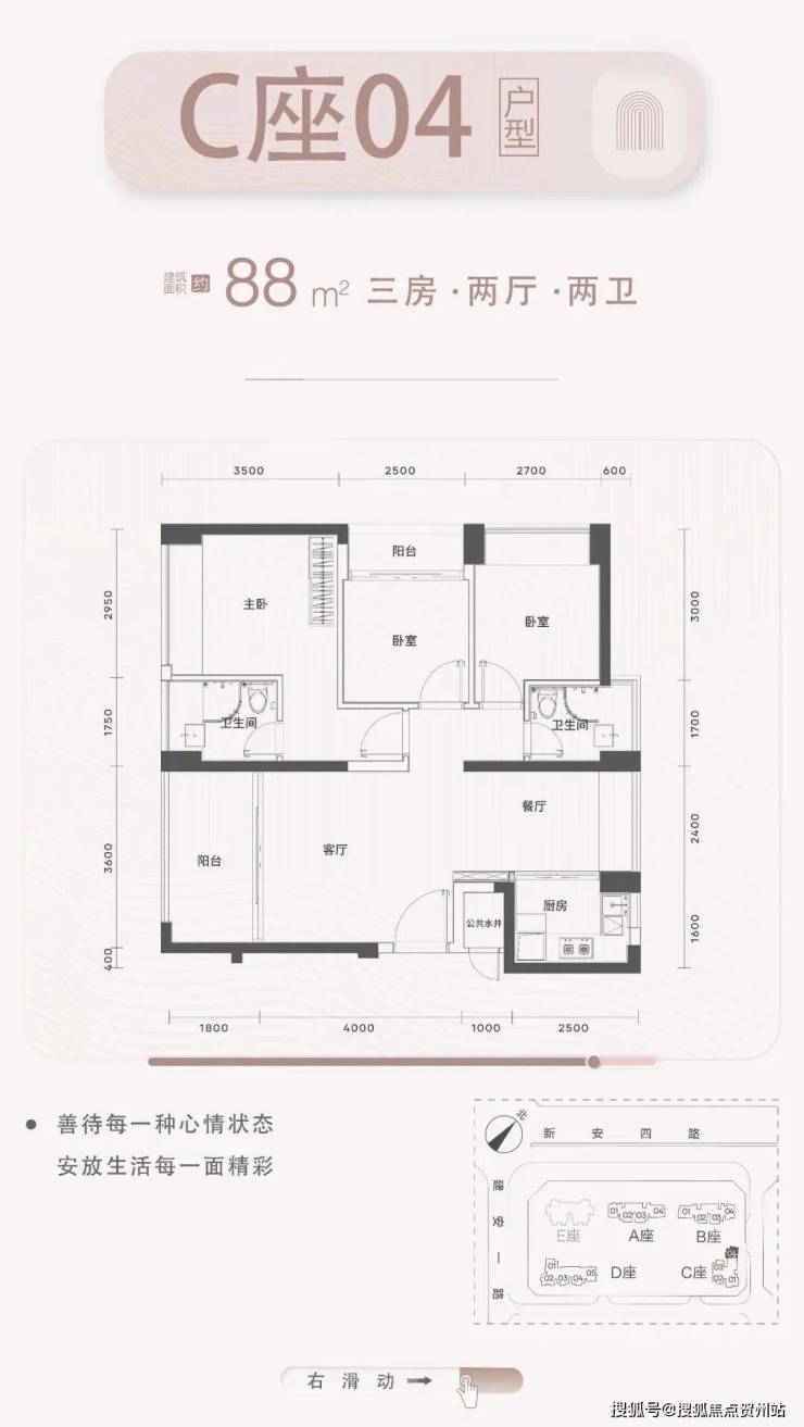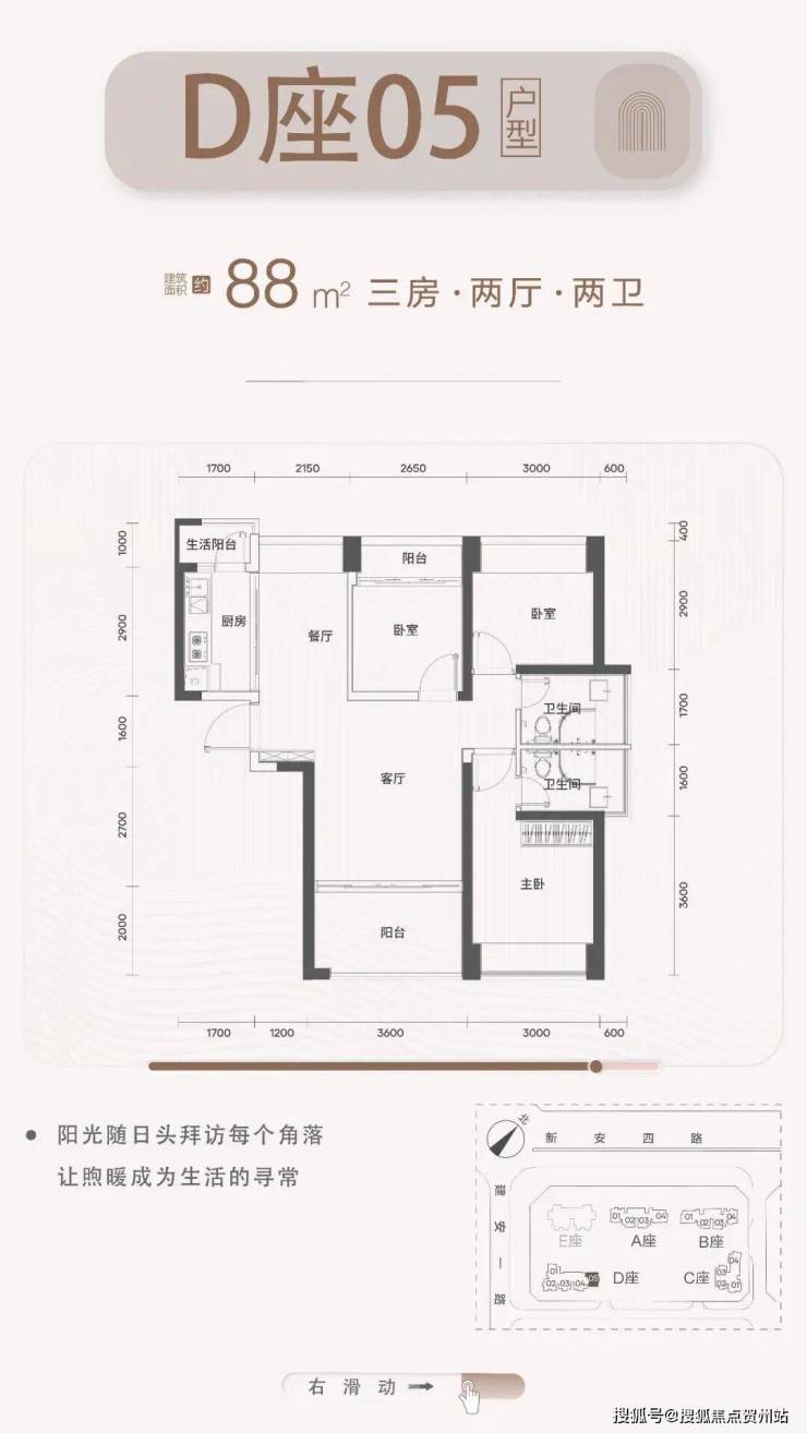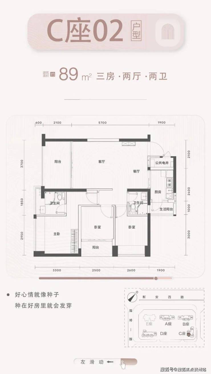 (1)89㎡三房两卫,折后总价660万起,折后单价7.4万;