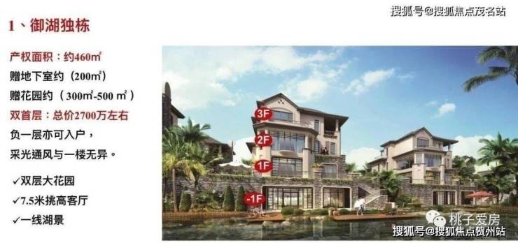 独栋:460平方加赠送地下室200平左右加300到500平花园(湖景)