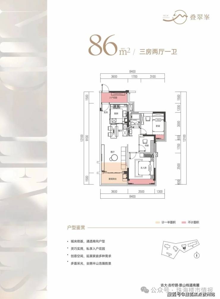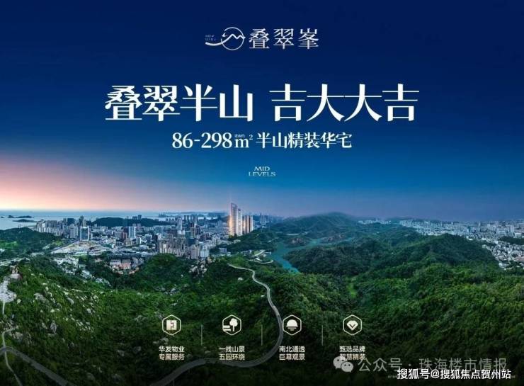 珠海叠翠峯-吉大城央只此在售纯住宅半山新品;约86-298㎡半山精装华宅 全城仰望。城市之心:吉大吉柠路景山栈道南麓,稀缺资源:半山之上一线无遮近山瞰城,独创户型:南北通透全明户型国际精装