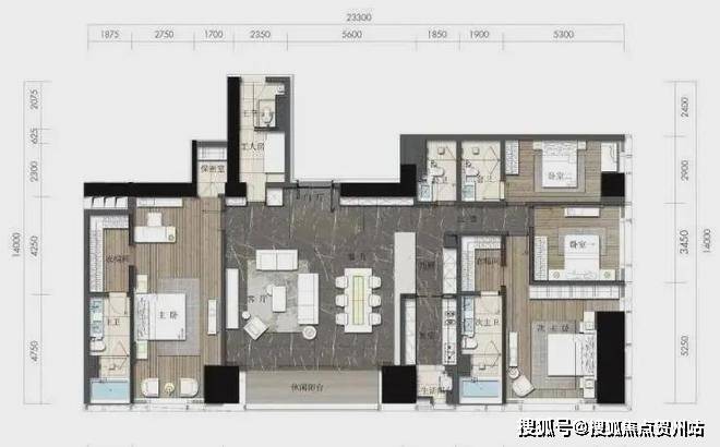 约164㎡2房2厅2卫(独立入户玄关,动静分离,约33㎡豪华主卧,承载品质生活)
