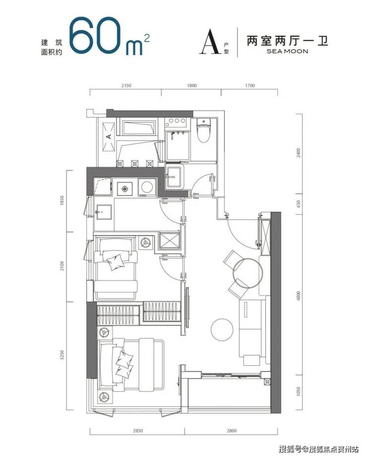 (4)公寓60㎡两室两厅一卫,总价419—546万,单价7万-9.1万;