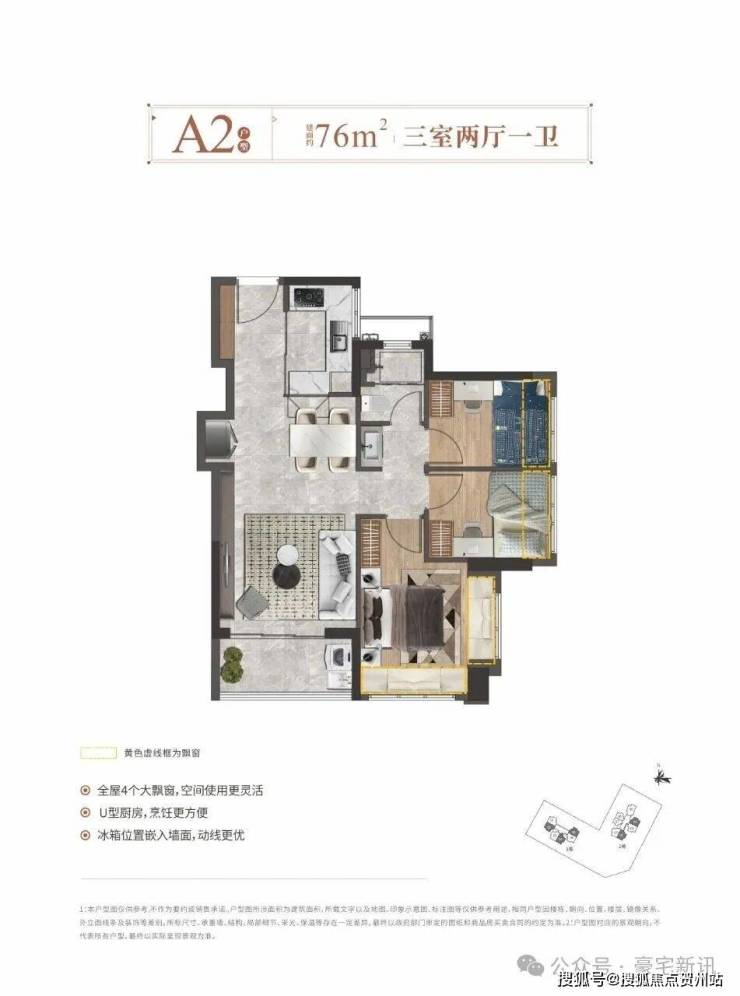 ——建面约76㎡3房2厅1卫