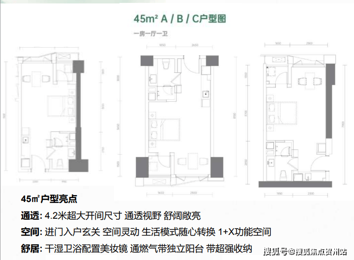 (1)45㎡一房一厅一卫;