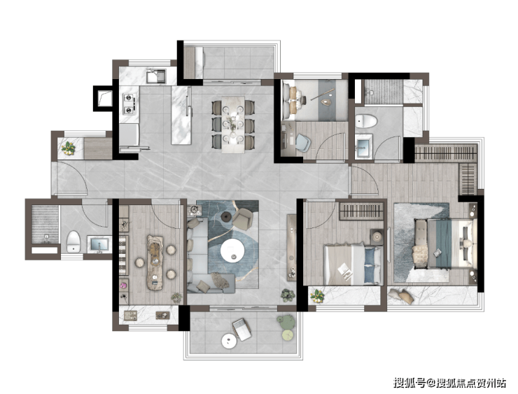 LDKG一体化设计U型厨房约6米双面宽超大景观阳台独立卧室带独立卫浴主题设计儿童房