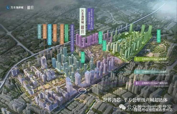 万丰区域整体城市更新项目包含A、B、C三区,合计总建面超500万平,包含商业、住宅、产业、甲级写字楼、高端酒店、学校教育、文化休闲、交通枢纽、生态公园等全维业态。