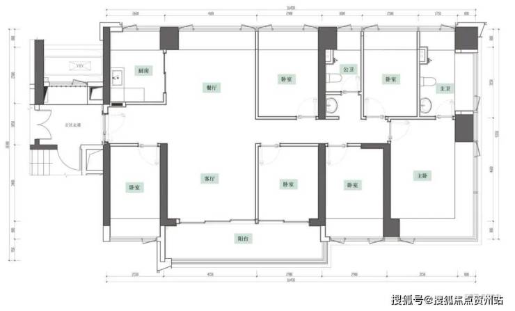 建面约169平6房户型图示意