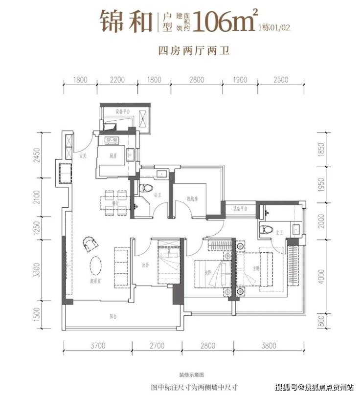 •锦和·约106㎡四房两厅两卫:南向四开间,一线园林景观,自在奢想。