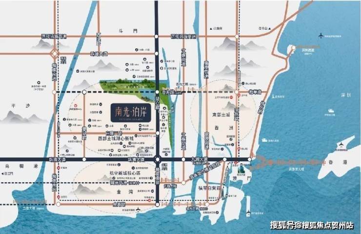 珠海,得天独厚的地理环境—衔接港澳两地,是粤港澳大湾区重要门户枢纽。南光泊岸位于港珠澳大桥延伸线上,4桥2轨4高速2港1互通,高效通达香海大桥东西部双城区,享大湾区1小时特别生活圈。