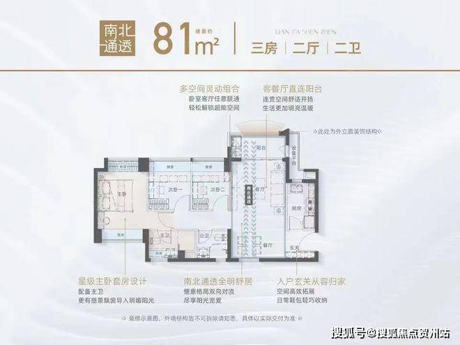 81㎡户型:折后总价:约498万-548万。特点:竖厅南北通透格局,客厅开间3.4米,卧室宽度分别为3米、2.6米、2.2米,L型厨房设计,阳台为西北或东北朝向。