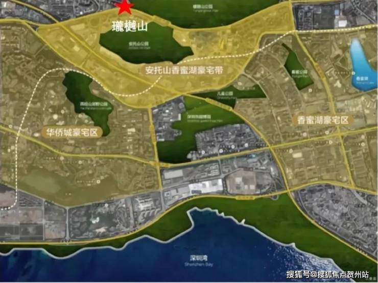 珑樾山所在的安托山板块,左手牵华侨城,右手连香蜜湖,在两大深圳众所周知的“豪宅区”中间。※项目位置示意图※