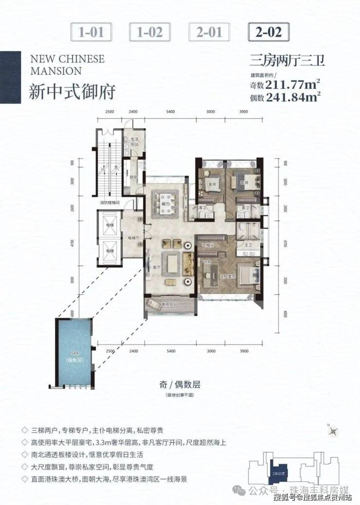 🎖高使用率大平层豪宅,3.3米奢华层高,非凡客厅开间,尺度超然海上